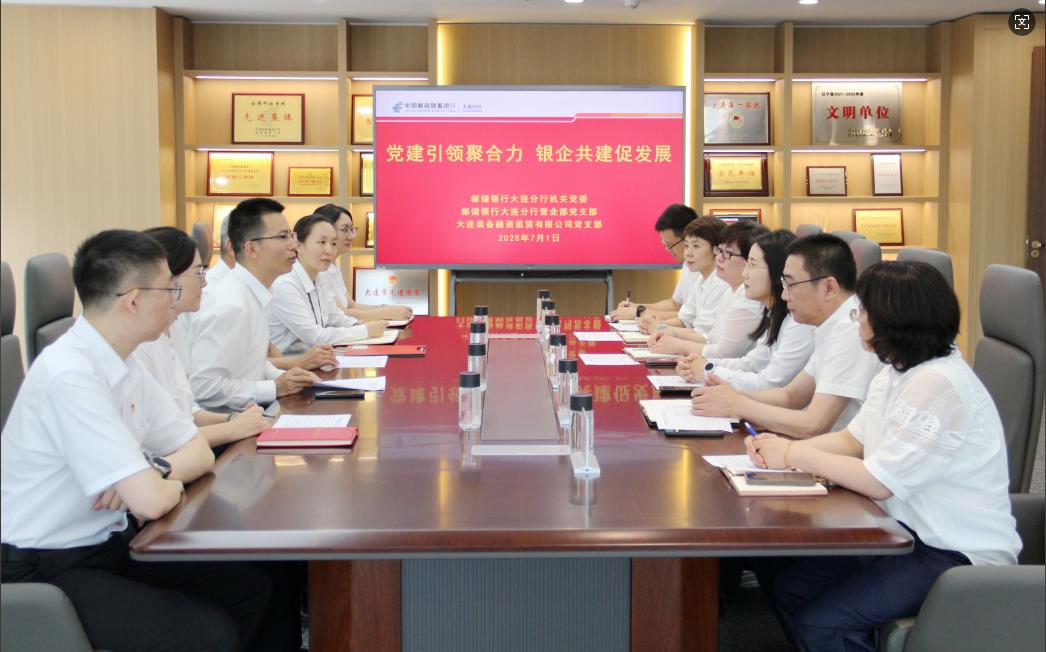 為慶祝建黨 104 周年,進一步促進黨建與業(yè)務(wù)發(fā)展深度融合,7月1日下午2點,裝備租賃黨支部組織公司全體員工,在裝備投公司副總經(jīng)理田霖霖的帶領(lǐng)下,前往郵儲銀行大連分行營業(yè)部,開展以“黨建引領(lǐng)聚合力,銀企共建促發(fā)展”為主題的黨日活動,搭建起與大連郵儲銀行黨建和業(yè)務(wù)交流的橋梁。郵儲銀行大連分行機關(guān)黨委書記夏偉同志及大連分行營業(yè)部總經(jīng)理姜海鑫同志攜營業(yè)部全體黨員表示熱烈歡迎。